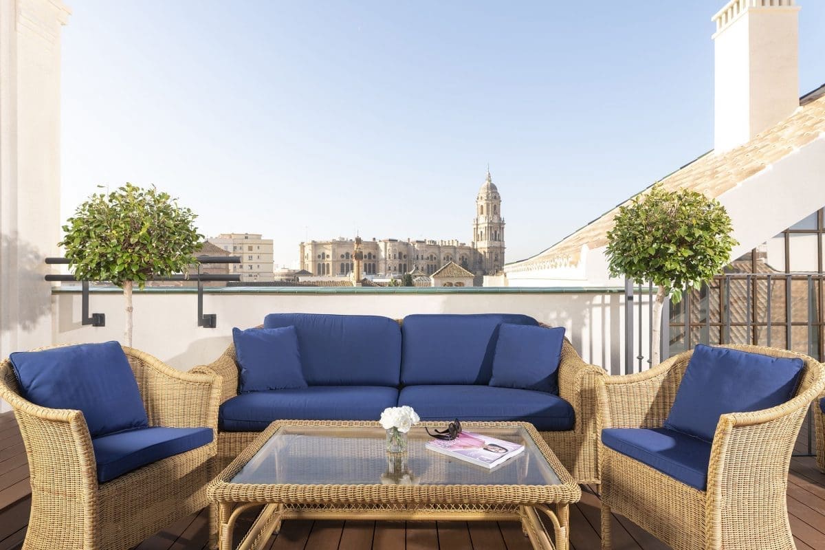 Inviting and intimate, it is the only room situated on our top floor. With access to a private terrace, this room offers exceptional views of the cathedral and Malaga’s old town.