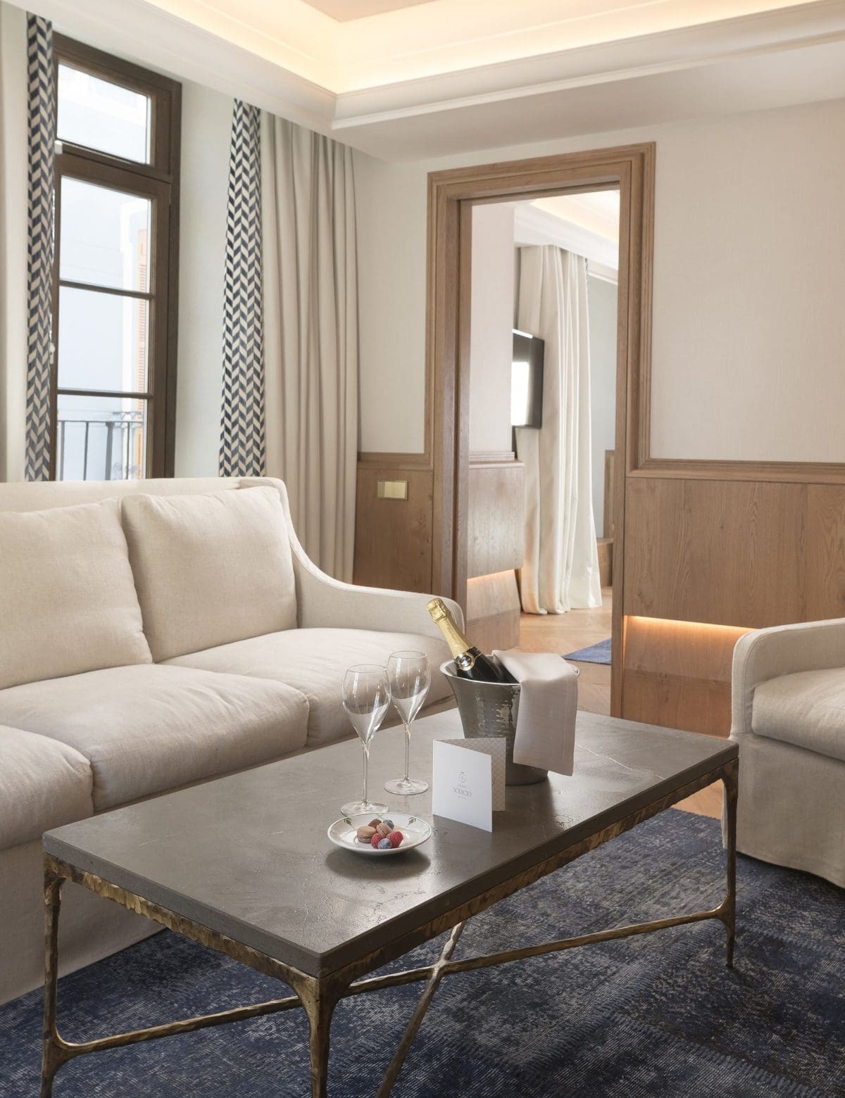 Spacious room with a living area where classical décor is fused with modern style, creating an experience of absolute calm.